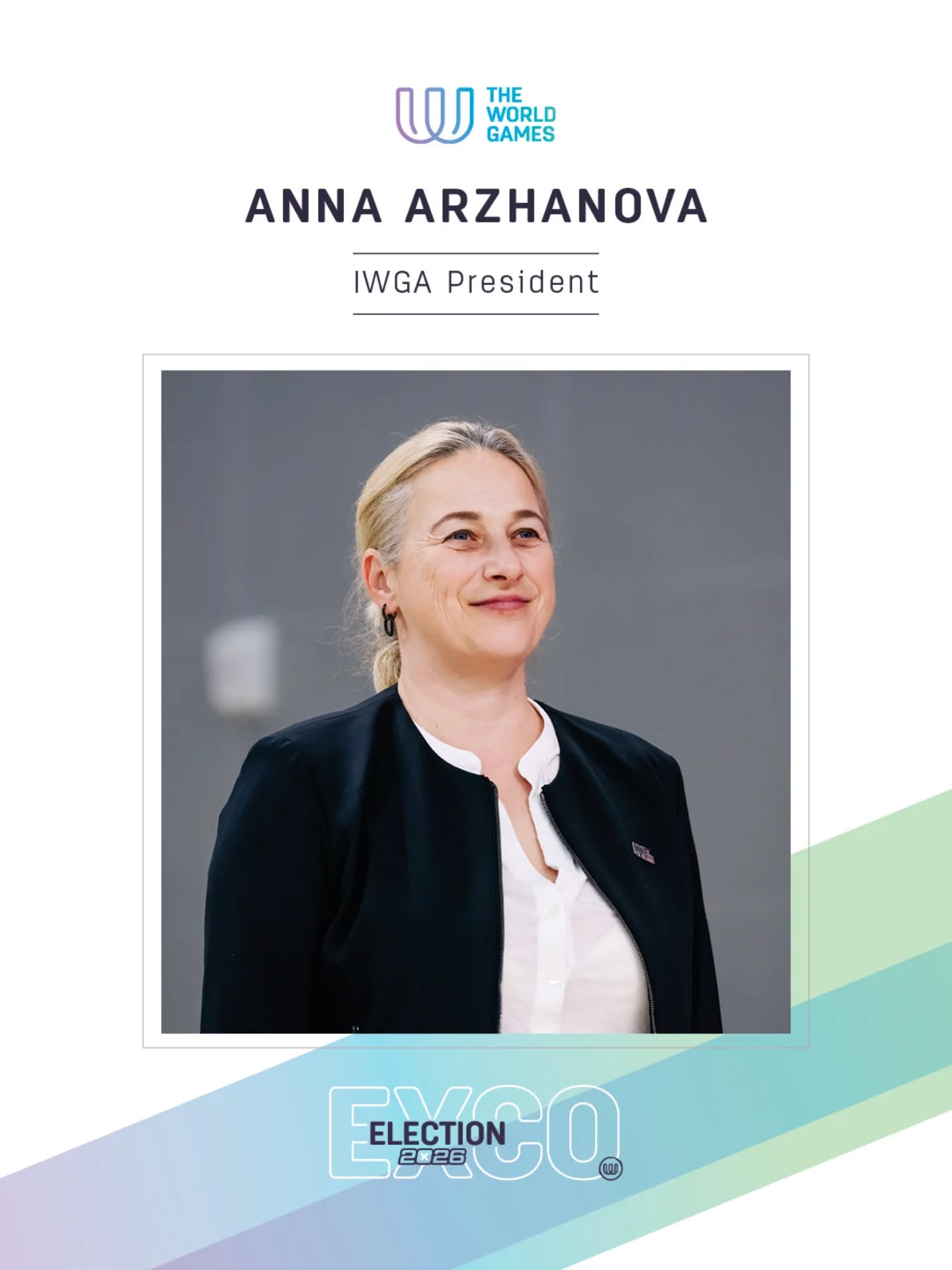 Az IWGA éves közgyűlésén, amelyet 2026. április 25-én a lausanne-i Olimpiai Múzeumban tartottak, az IWGA megválasztotta új elnökét a 2026–2030-as időszakra. Anna Arzhanova lett a szervezet történetének negyedik elnöke, miután 29 szavazatot kapott az IWGA tagjaitól, és jelentős támogatást élvezett a szervezetet alkotó nemzetközi sportszövetségek részéről. Mind a 39 tagszövetség képviseltette magát Lausanne-ban és részt vett a szavazáson, ami jól mutatja az IWGA tagságának erős elkötelezettségét.